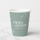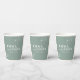 Les gobelets en papier Boho Floral sont caractérisés par un style boho avec des illustrations florales et des couleurs vert sauge.