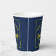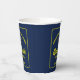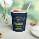 Cette tasse de papier moderne marine bleu et jaune coutume pour la fête de fin d'études supérieures propose une typographie classique de votre nom de lycée ou de collège pour la classe de 2025. Customisez avec votre année de remise de diplômes sous l'écriture chic manuscrite et le casquette noir gris pour une décoration supérieure personnalisée.