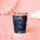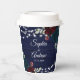 Gobelets En Papier Marsala en bois rustique & Fleurs bleues de marine