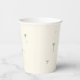 Des tasses en papier blanc avec des tons vert olive et noir, associées à des icônes de lunettes à martini dessinées à la main avec des olives et des arcs.