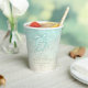 Une texture aquarelle dans les tons doux de la mer et du sable est l'arrière - plan des éléments marins comme la tortue, l'étoile de mer et les coquillages qui sont rehaussés de vagues de mousse de mer pour créer les pièces de cette suite mariage. La tasse en papier mariage montrée ici présente la tortue ci-dessus plus un modèle pour ajouter facilement votre message de remerciement, les noms et la date du mariage. Recherchez ID837 pour voir toutes les pièces de coordination dans cet ensemble.