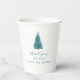 Ces simples tasses en papier quinceanera d'hiver "merci beaucoup de neige" sont dotées d'un magnifique arbre de Noël bleu turquoise avec un topper de flocon de neige et de votre nom personnalisé avec un élégant script de remerciement bleu.