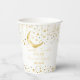 Twinkle scintille petit baby shower étoilé or et parties scintillant modèle de soirée coupes papier de la table de baby shower personnalisée. Simples or crescent or lune étoiles et arroses sur arrière - plan blanc, fonte or baby shower modèle tasses