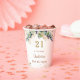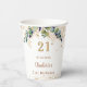 Pour une soirée d'anniversaire élégante de 21e (ou tout âge). Un arrière - plan blanc. Sur le devant et le dos : Personnalisez et ajoutez un nom, un âge et une date. Décoré avec de la végétation d'eucalyptus et de la poussière de parties scintillant imitation.