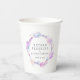 Mother blessing or Blessingway gathering purple and white paper party cups. Add your own mother to be's name and event details. Other matching items available. Original watercolor glass beads and feathers painting and design by Sarah Trett exclusively for www.mylittleeden.com on zazzle.