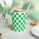 Gobelets En Papier Motif blanc À damiers blanc vert