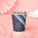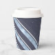 Faisant partie d'un ensemble de design de coordination pour Noël, cette tasse en papier présente des rayures diagonales avec un thème extérieur dans les tons bleu ciel, bleu marine et blanc. Un texte optionnel "Joyeux Fêtes" et un modèle ont été fournis pour ajouter votre nom et/ou un autre texte. Faites une recherche ID861 à ID864 pour voir d'autres options de couleurs et d'autres produits dans cet ensemble moderne de design de Noël.