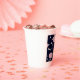 Ce design présente un grand motif bleu marine et rose aquarelle.