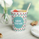 These festive Christmas party cups will certainly bring good cheer. The pattern is created with red, green, blue, and dark green trees. Each tree has texture added for depth. The pattern is set against a very light gray background. The plate currently says "Merry Christmas". This is a template that can be customized if you choose to do so.