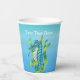 Ces tasses en papier sont différentes nuances de bleus avec une créature océanique mystique ou hippocampe qui est bleu et blanc aqua avec sa queue enveloppée d'algues vertes à l'avant et à l'arrière. Customisez votre texte avec les modèles à l'avant et à l'arrière.