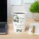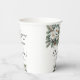 Neige dans l'amour nuptiale hiver tasses à café avec des feuilles verts d'hiver, fleurs blanches, et un peu de neige pour capturer le thème d'hiver