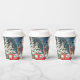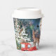 Christmas Red Truck Père Noël Rustic Winter Holidays Coffee Paper Cups présente un design hivernal rustique avec un camion rouge, un bonhomme de neige, un renne, un cabine, un sapin de Noël et Père Noël. Conçu par Evco Holidays www.zazzle.com/store/evcoholidays