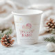 La tasse de papier de douche "Père Noël Baby" a un design doux et festif, avec un bébé dans un chapeau de Père Noël rose avec des nuages doux et des étoiles. Il utilise un script rouge ludique et des tons pastel, créant une atmosphère de vacances confortable, parfait pour un baby shower d'hiver.