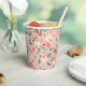 Des icônes de Noël fantaisistes et vintage sur fond rose doux, avec Père Noël, mitaines, saintes et stars festives dans des tons pastel et audacieux.