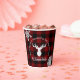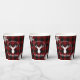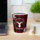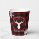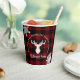 La conception du produit présente une silhouette d'un renne sur un motif classique à plis de buffle rouge et noir. Combinée à votre propre texte personnalisé, cette composition crée des tasses en papier de style campagnard, modernes et uniques pour les fêtes de Noël ou d'hiver.