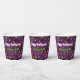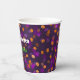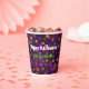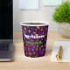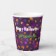 Joli petit Jack-o'-lantern citrouilles souriant et violet montrant à travers l'arrière - plan bokeh foncé, Happy Halloween salutation en blanc et nom de famille ou nom personnel en vert néon décorent cette mignonne tasse de papier fête d'Halloween. Modifiez facilement le nom à l'aide du Modèle fourni. Les dimensions sont de 3,75 po x 3 po d. La tasse est d'une capacité de 8 oz et est idéale pour les boissons froides et chaudes. Ajoutez un couvercle pour un petit supplément. Pour plus d'informations, reportez-vous à la section "À propos de ce produit" à côté. Imprimé aux États-Unis.