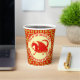 Des tasses de papier chinoises personnalisées pour l'année 2024 de l'année du Dragon apporteront une touche design à votre célébration. Si festif et amusant, ces gobelets en papier Happy Lunar New Year peuvent être considérés comme faisant partie de vos décorations de fête. Un cercle de vanille pâle bordé d'un rouge vif contient une illustration de dragon rouge avec deux ensembles de texte voûté autour des bords, qui peuvent être customisés. Des carrés rouges ajourés sur un arrière - plan de couleur or foncé finissent le design. Personnalisez ces tasses de papier de fête avec votre nom ou message personnalisé de nouvelle année pour l'une des tasses de votre fête de famille.