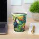 Image d'un oiseau toucan tropical entouré de feuilles verts et de fleurs d'hibiscus, générée avec l'aide de l'IA. Vous pouvez facilement personnaliser cette tasse de papier avec votre propre nom ou texte.