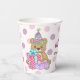 Voici de mignonnes tasses en papier pour une fête d'anniversaire pour tout-petits ou toute petite fille ! Un adorable ours en peluche habillé d'un casquette d'anniversaire rayé rose, vert et lavande. Devant l'ours sont des paquets cadeaux pois brillants. L'image de l'ours est placée sur un joli arrière - plan de lavande, de pois rose et blanc. L'image de l'ours se trouve sur les deux côtés de la tasse. Le texte personnalisé entre les images dit actuellement Joyeux Anniversaire (Nom de l'enfant) mais vous pouvez le changer à tout ce que vous voulez. *Merci à Real Deal Clipart pour l'image clipart utilisée pour créer ce design.