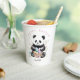 Panda de Pâques porter aquarelle tasse à papier floral. Aquarelles rustiques et lineart style pastel bouton de couleurs. Nom et texte personnalisés.