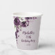 Coupes de papier de fête 75e anniversaire pour femmes, aquarelle violette et blanche, fleurs et papillons. Personnalisée avec le nom et l'âge de l'invitée d'honneur ainsi que la date de sa fête. Contactez-moi pour obtenir de l'aide sur vos personnalisations ou pour demander des produits Zazzle correspondants ou coordonnés supplémentaires pour votre groupe.