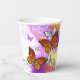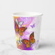 Gobelets En Papier Papillons Monarque sur Arrière - plan pourpre