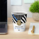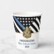 Cette conception comprend un drapeau de la police avec des rayures noires et blanches, ainsi qu'une fine bande bleue. Une excellente façon de féliciter la nouvelle académie de police diplômée. Customiser avec le nom de l'agent d'application de la loi diplômé en or. Célébrez cette étape importante dans le style!