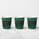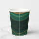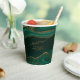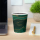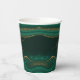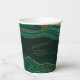 Cet ensemble de design mariage, avec son motif abstrait d'ondulations fluides et de veines d'or scintillant, rappelle les formations rocheuses et les gemmes étincelantes. La palette de couleurs à bijoux dans les tons vert émeraude ajoute à l'attrait. La tasse de papier coordonnée montrée ici a un arrière - plan abstrait tenant le texte optionnel de "Cheers to the happy couple" avec vos noms et la date du mariage. Recherchez ID903 pour voir d'autres choix de couleurs et coordonner des pièces pour cette collection de mariages unique.