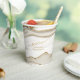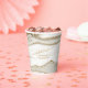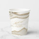 Cet ensemble de design mariage, avec son motif abstrait d'ondulations fluides et de veines d'or scintillant, rappelle les formations rocheuses et les gemmes étincelantes. La palette de couleurs neutres dans les tons du champagne à la pierre à savon ajoute à l'attrait. La tasse de papier coordonnée montrée ici a un arrière - plan abstrait tenant le texte optionnel de "Cheers to the happy couple" avec vos noms et la date du mariage. Recherchez ID903 pour voir d'autres choix de couleurs et coordonner des pièces pour cette collection de mariages unique.