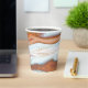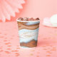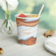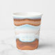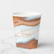 Cet ensemble de design mariage, avec son motif abstrait d'ondulations fluides et de veines d'or scintillant, rappelle les formations rocheuses et les paysages du sud-ouest. Une palette colorée dans les tons de rouille, et de terre cuite à travers le bleu ciel ajoute à l'attrait. La tasse de papier coordonnée montrée ici a un arrière - plan abstrait tenant le texte optionnel de "Cheers to the happy couple" avec vos noms et la date du mariage. Recherchez ID903 pour voir d'autres choix de couleurs et coordonner des pièces pour cette collection de mariages unique.
