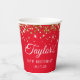 Créez votre propre parties scintillant d'or et des tasses de papier 30e anniversaire rouge dégradé pour vos invités. Le texte présente une calligraphie classique et élégante associée à une police serif casquette. Customisez les styles de police pour créer votre propre vaisselle pour sa célébration spéciale.