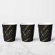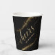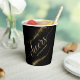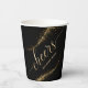Ajoutez une touche personnalisée à un anniversaire ou à toute autre fête avec ces tasses personnalisées en papier. Design dispose de calligraphie script moderne texte métallique "Cheers" et confetti couleur or sur un arrière - plan noir.