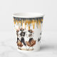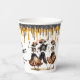 Ces amusantes tasses en papier de fête d'Halloween comportent un trio de squelettes dansants joyeux habillés en tenue de fête. Au sommet de la tasse sont des gouttes d'orange et de noir faux glitterie. L'image squelette est répétée deux fois, avec du texte noir entre le texte qui dit "Happy Halloween", et votre texte personnalisé ci-dessous. Il est facile de changer le texte ! *La parties scintillant est simulée; aucune parties scintillant réelle n'est utilisée dans le produit.