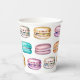 Macarons mignonnes d'aquarelle rose, violet, bleu et blanc avec une vibe vintage tasses de papier fête d'anniversaire.