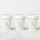 This paper cup design has a pastel color palette and features a nativity scene with baby Jesus in a manger. In the center in hand drawn text that says "Glory to the Newborn King." You can add your name to the back.