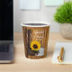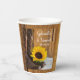 Personnalisez ces charmants tasses en papier Mariage Country Sunflower Western pour votre réception de mariage décontractée et classe dans un ranch ou votre fête de grange de douche nuptiale. Ces gobelets jetables informels mais élégants sont munis d'une photo de ferme rapprochée d'une paire de bottes de cowboy en cuir marron avec une fleur de tournesol jaune et un arrière - plan en bois de grange.
