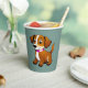 Un gentil chien de dessin animé brun-blanc avec de grands yeux et un sourire joyeux. Son collier rose et son regard de garde sont animés de joie de vivre, de curiosité et de gentillesse - un motif qui fait immédiatement bonne humeur. Un coeur de joie et une ruse qui ne s'arrête jamais ! Couleur de fond variable.