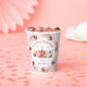 Little Citrouille Is On The Way, élégantes tasses en papier automne / automne Baby shower en marsala bordeaux, rose et crème dans le style boho avec citrouilles, fleurs et pampas herbe et arrière - plan rose. Personnalisez facilement tout le texte. - Kate Eden Art
