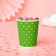 Tasses de fête en papier avec petit motif de coeur blanc sur arrière - plan vert vif. N'oubliez pas de consulter le reste de la petite collection de papier de coeur et de couleurs audacieuses