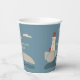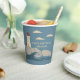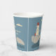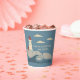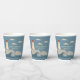 Ajoutez une touche balnéaire aux fêtes de plage et autres événements spéciaux avec ces tasses personnalisées en papier. Ils ont une simple illustration nautique d'un phare en rouge, crème ou ivoire. Le phare se dresse sur une côte rocheuse avec des vagues qui s'écrasent en contrebas et des nuages crème dans le ciel. Le graphique est positionné contre un arrière - plan bleu français doux.