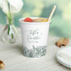 Personnalisez ces mignonnes tasses en papier floral avec vos noms, date mariage et photo. Couleurs de ce design moderne et élégant : blanc et vert sage.