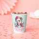 Ces élégantes tasses de papier de Noël vert menthe et rose avec un mignon manchot, un minuscule bonhomme de neige, et la verdure des baies vitrées présentent un joyeux dicton de Noël et un modèle pour votre nom de famille et l'année pour les personnaliser pour la fête de Noël.