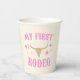 Ce sont des tasses de papier de fête d'anniversaire à thème My First Rodeo cowgirl rose!