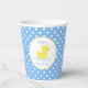 Bleu et blanc Polka Dot Coupes en papier Baby shower de canard jaune.