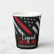 Cette conception comprend un drapeau de pompiers avec des rayures noires et blanches, ainsi qu'une fine bande rouge. Le texte "La légende prend sa retraite" se trouve au-dessus du nom du pompier, lieutenant ou chef qui prend sa retraite. Fêtez dans le style !