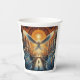 Un imaginaire de science-fiction à couper le souffle qui dépeint un être céleste majestueux avec des ailes rayonnantes descendant d'un portail divin de lumière. La scène est remplie d'architecture complexe, de symboles flottants et de colombes volantes, fusionnant des éléments futuristes et angéliques dans un paysage de rêve surréaliste. Un design parfait pour une tasse qui inspire l'imagination et l'émerveillement avec chaque gorgée!