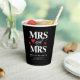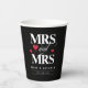 Tasses romantiques en papier noir pour un mariage lesbien avec MRS et MRS. écrites en lettres gras avec un coeur tourbillonnant et rouge. Personnalisez avec vos noms et date mariage !