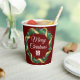 Cette belle tasse de papier rouge de Noël de compagnie est faite sur mesure avec votre logo d'entreprise dans une couronne de baies sainte festive avec l'or garland enveloppant autour de la verdure. Décor de vacances contemporain pour vos clients ou employés d'entreprise.