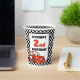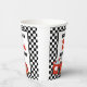 Voiture rouge sur les tasses en papier noir et blanc à damiers drapeau enfant de 2ème anniversaire de fête. Personnalisez avec le nom et l'âge de l'invité d'honneur. Contactez-moi pour obtenir de l'aide sur vos personnalisations ou pour demander des produits Zazzle correspondants ou coordonnés supplémentaires pour votre groupe.