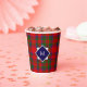 Gobelets En Papier Red Wool Plaid Tartan with Central Monogram Badge